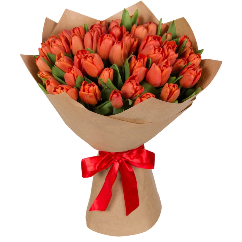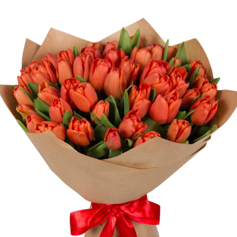 Букет из 45 красных тюльпанов в крафте