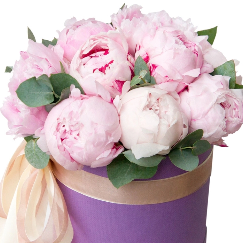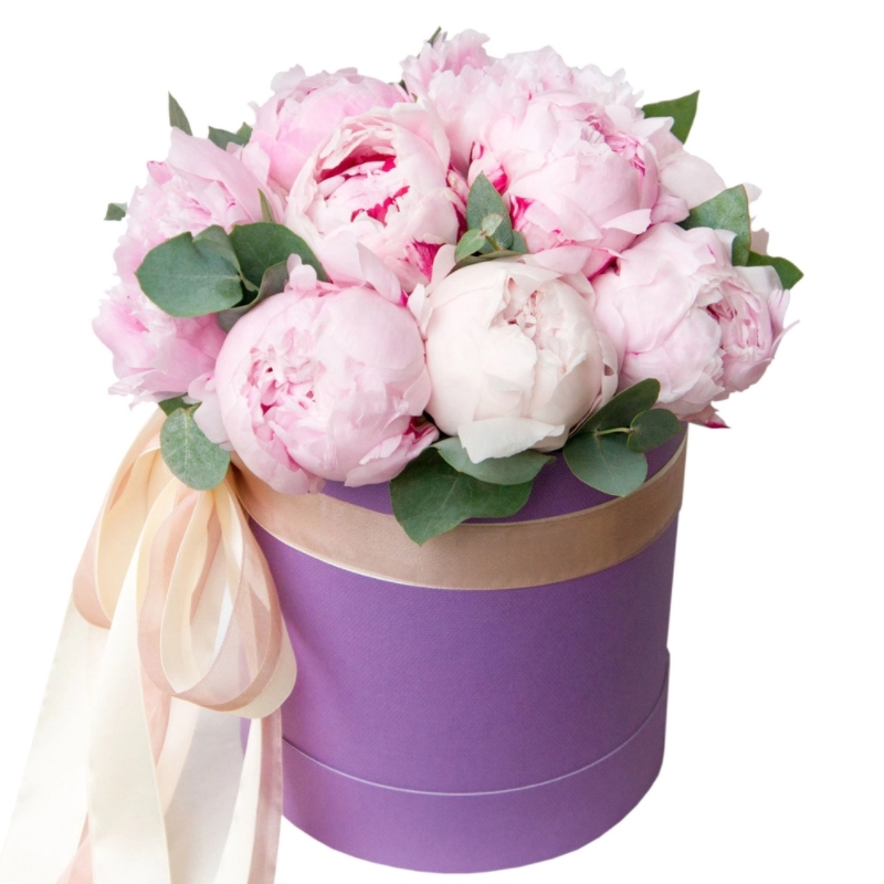 Букет из пионов в коробке "Валенсия"