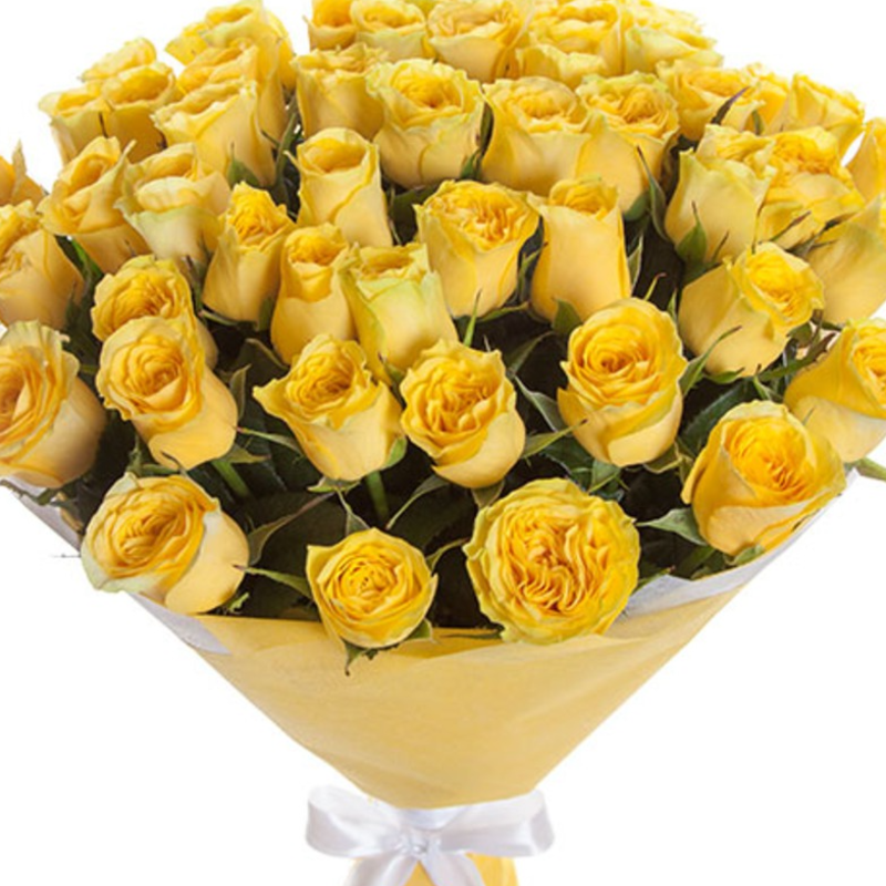 Букет состоит из 45 желтых роз, красивая упаковка, атласная лента.