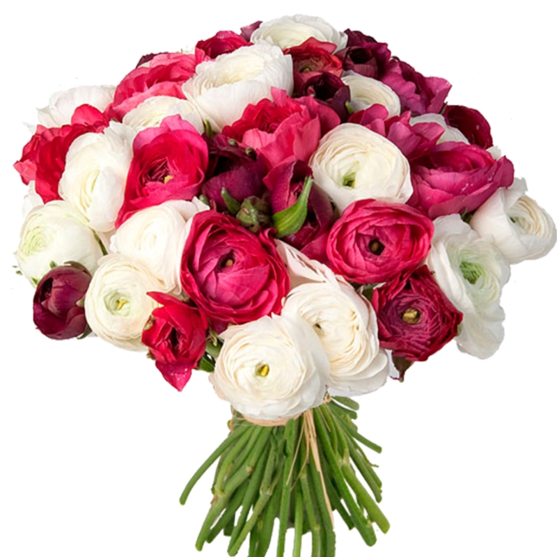 Букет состоит из MIX из 35 красных и белых ранункулюсов, лента.