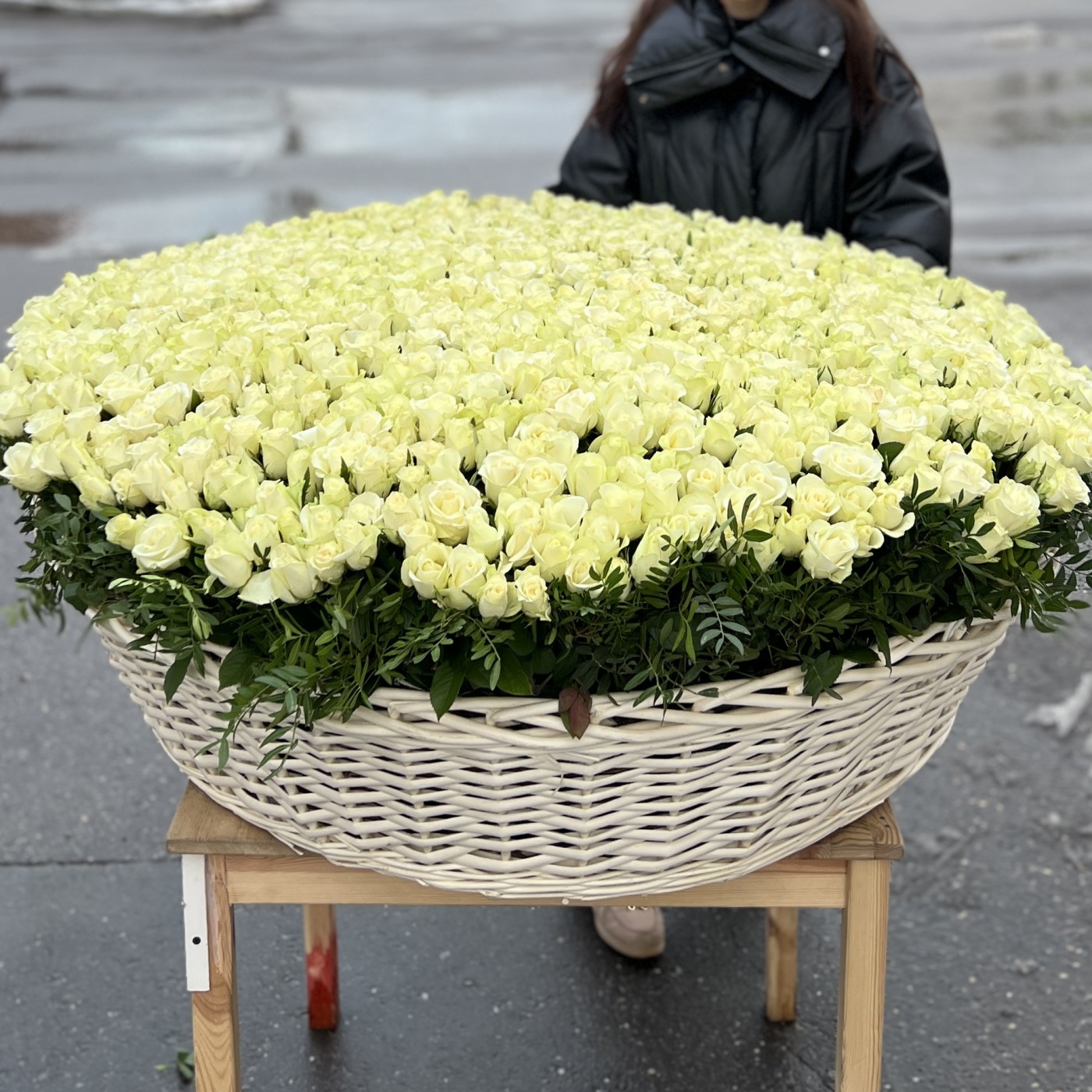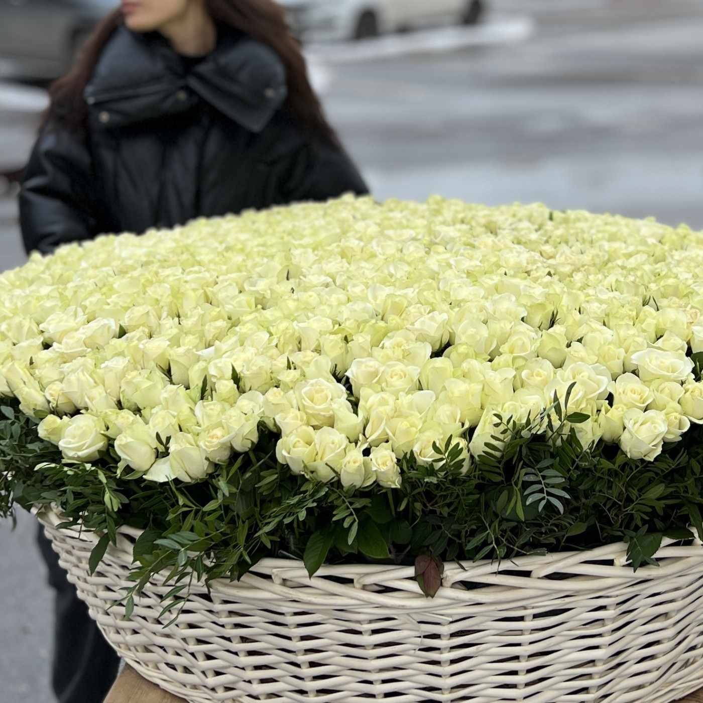 1001 белая роза в корзине MAX