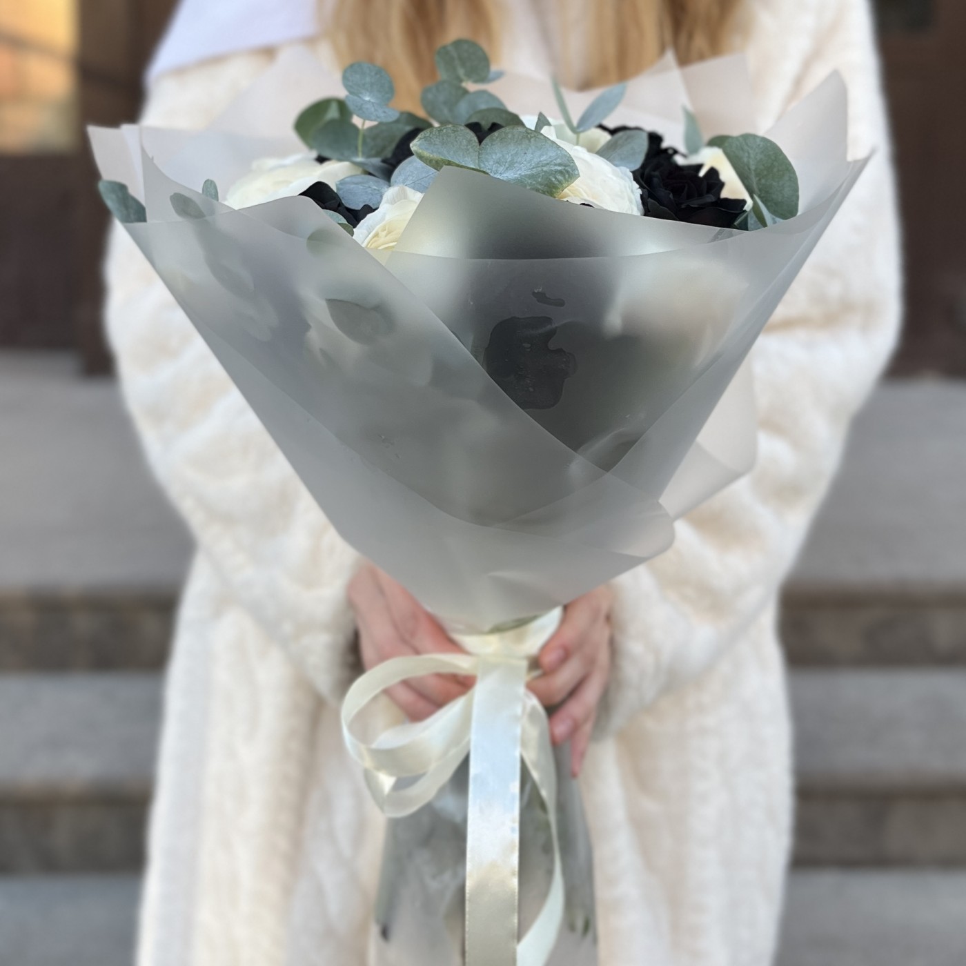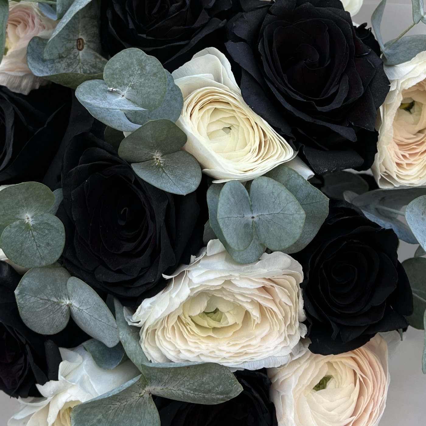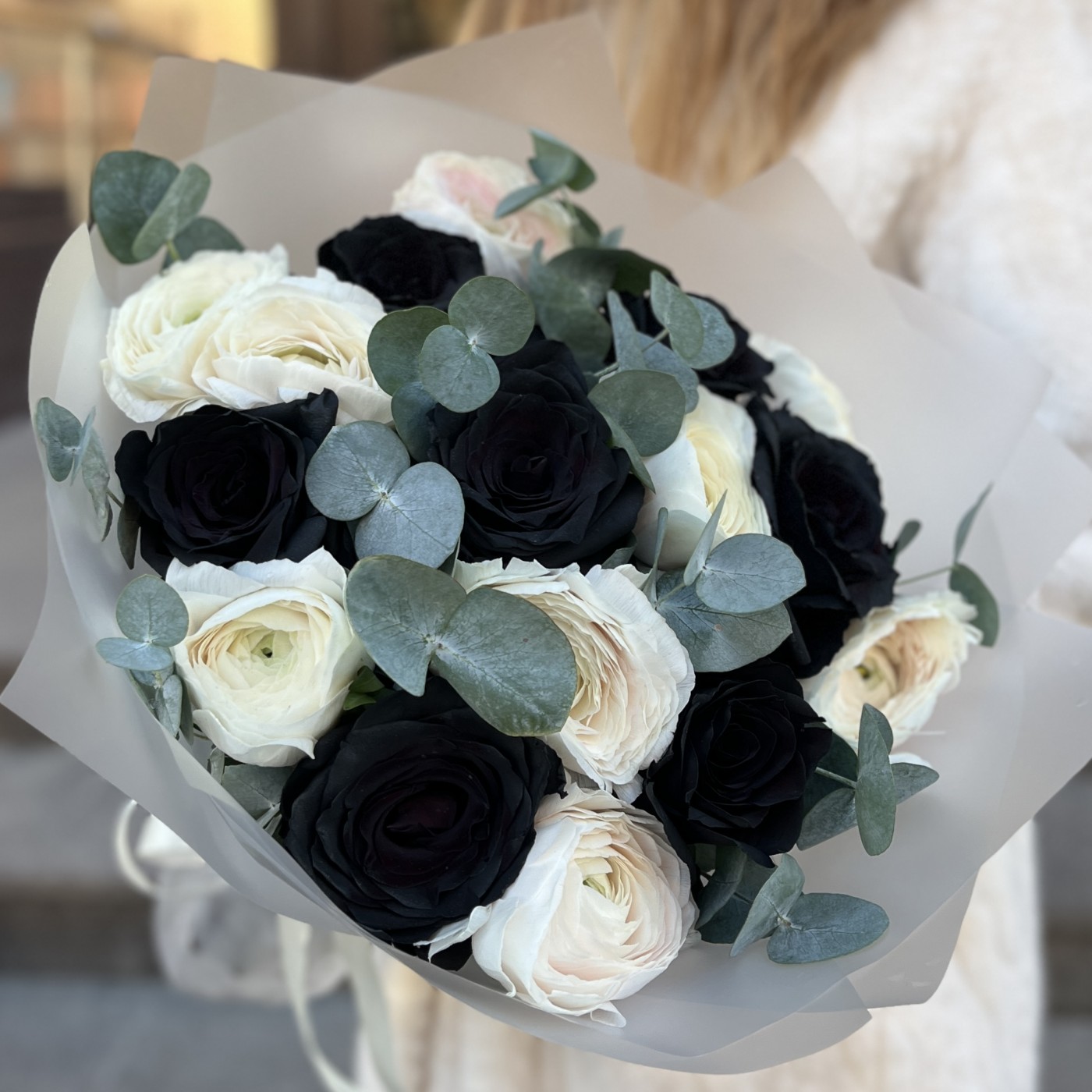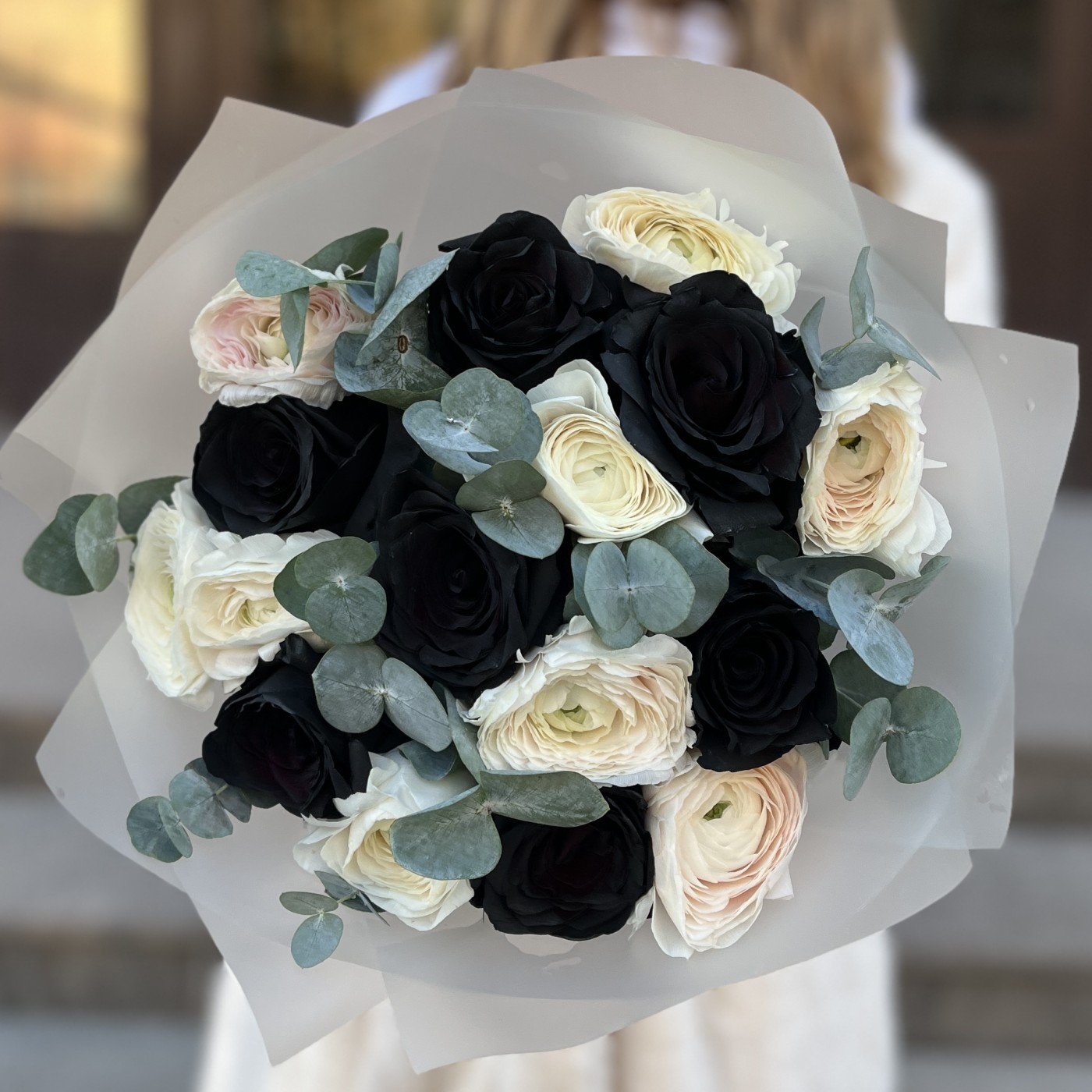Ранункулюс 10 шт., Роза черная 7 шт. |
