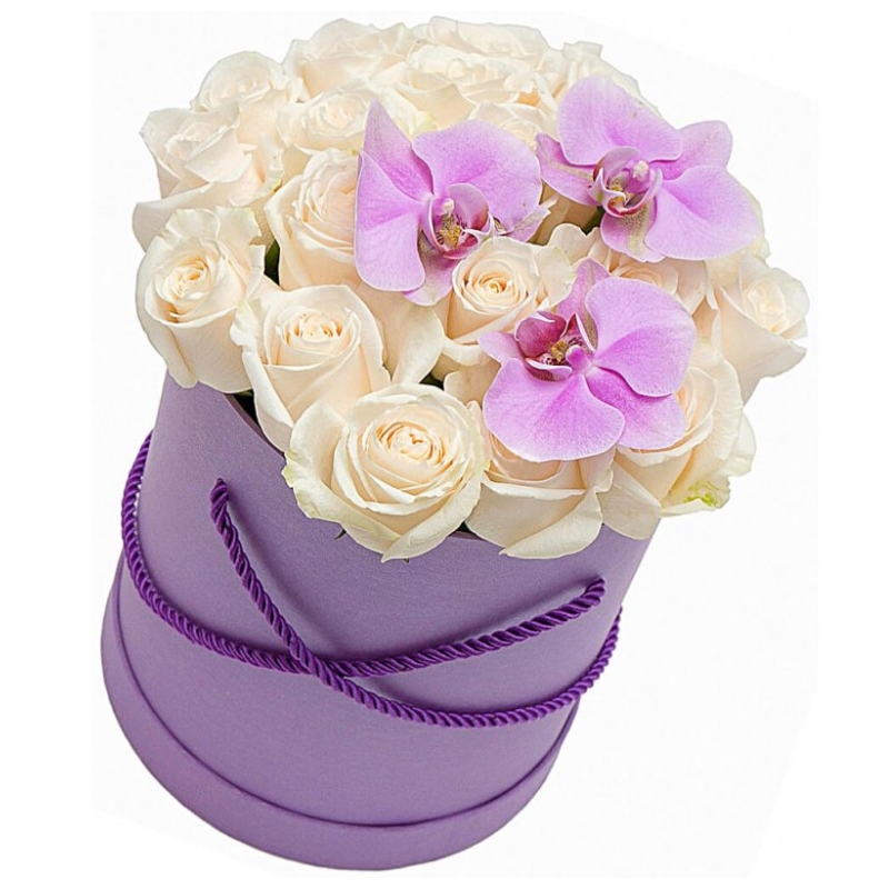 Букет из роз с орхидеями в коробке