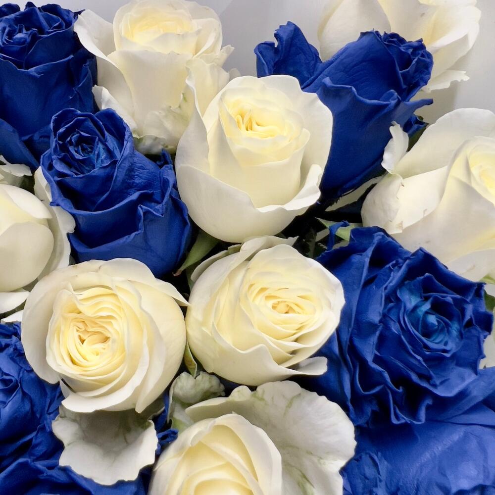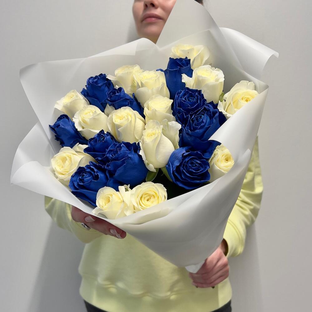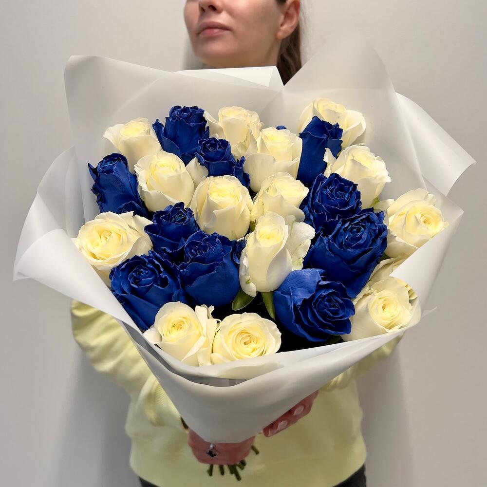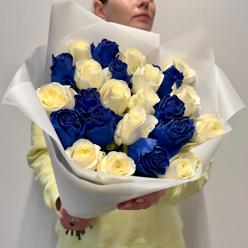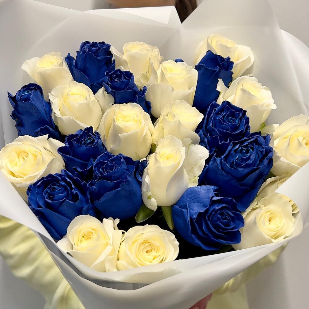 Букет из 25 синих и белых роз