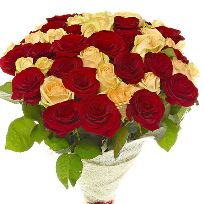 Букет состоит из 23 бордовые розы, 22 кремовые розы, красивая упаковка, атласная лента.