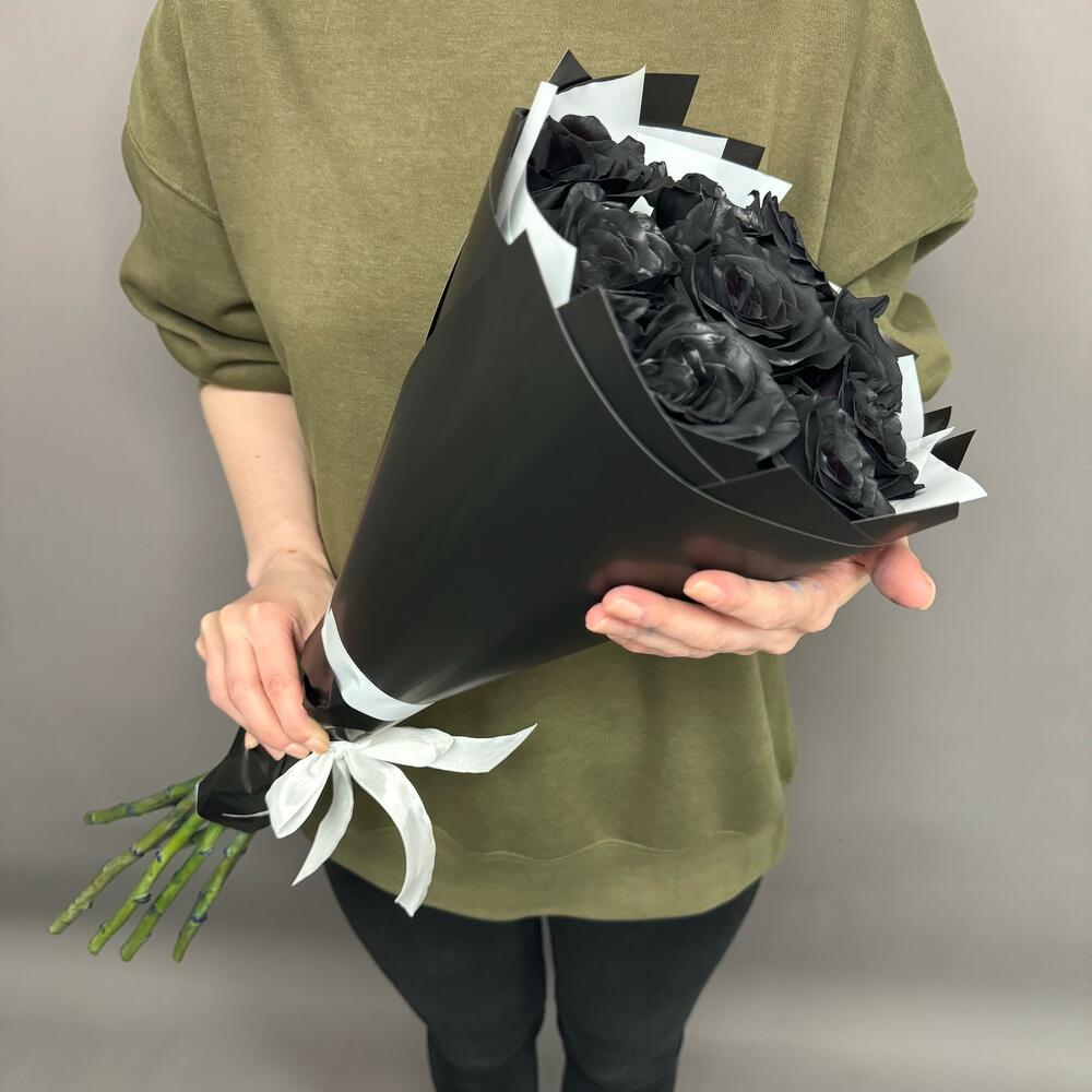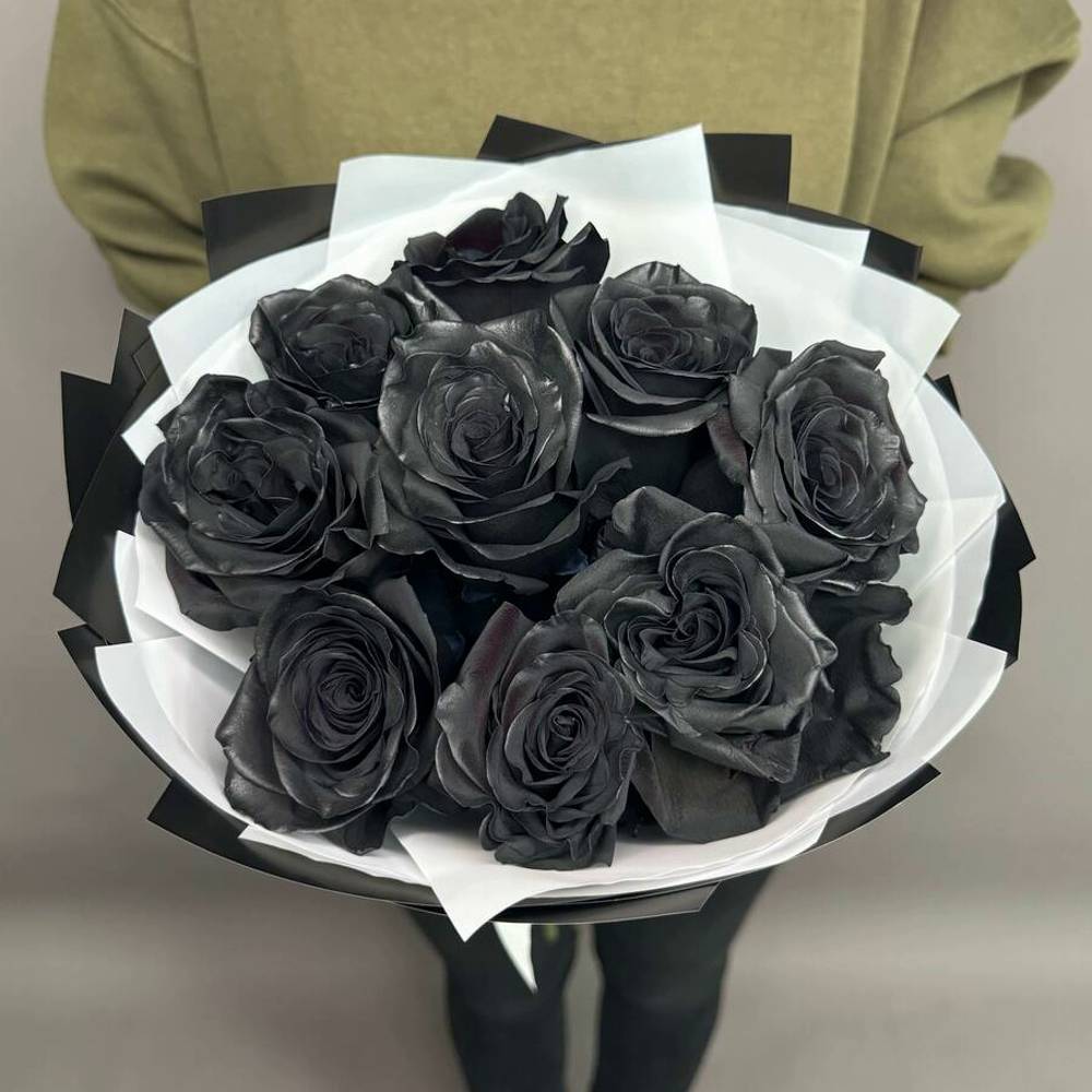 Роза черная 9 шт., Эвкалипт 2 шт. |