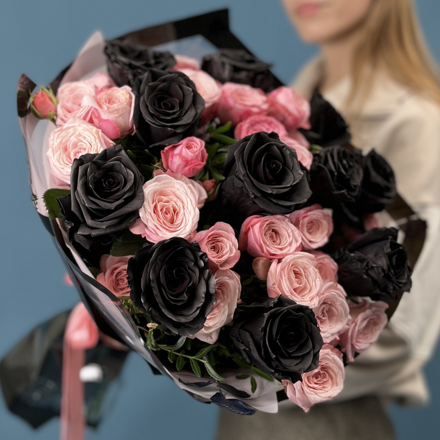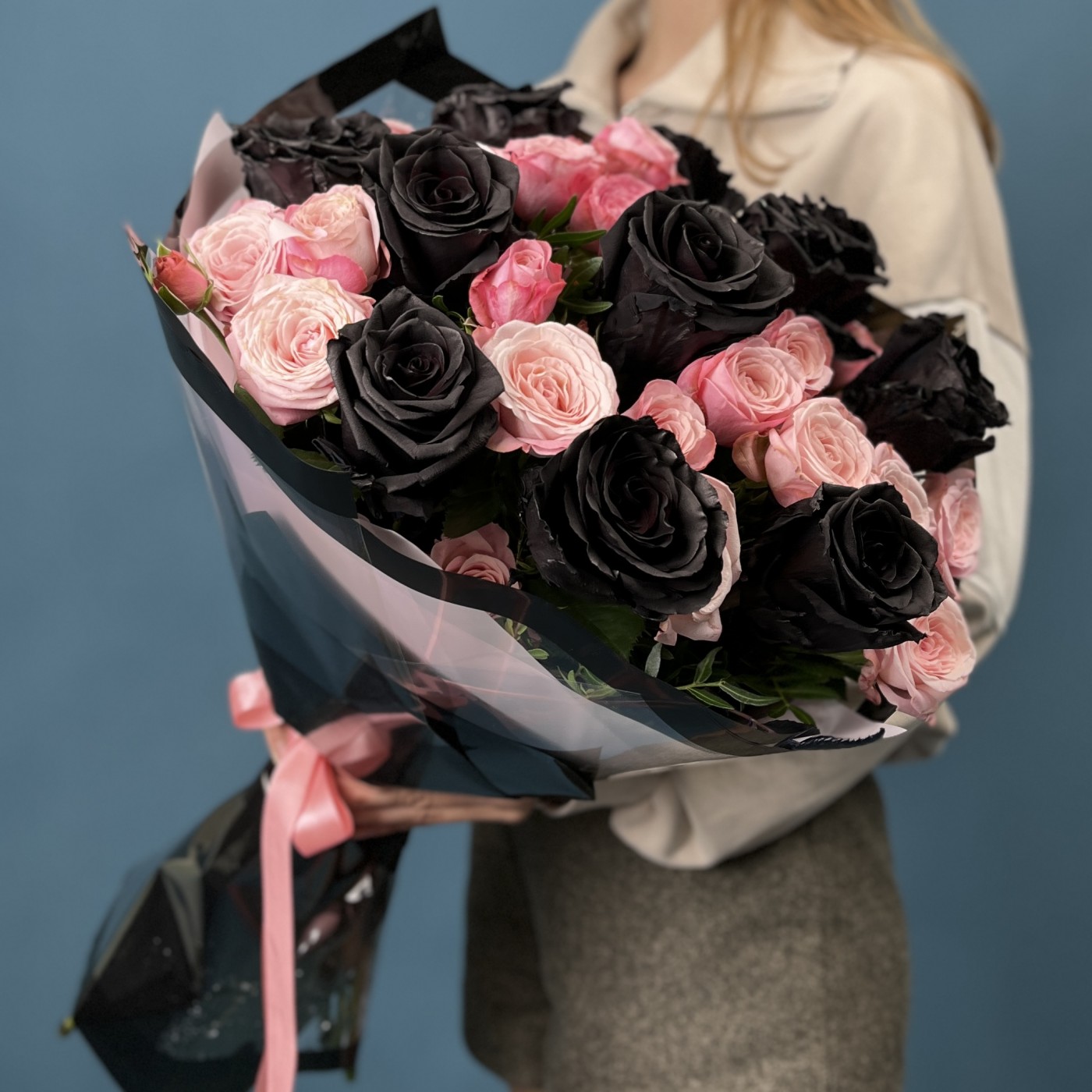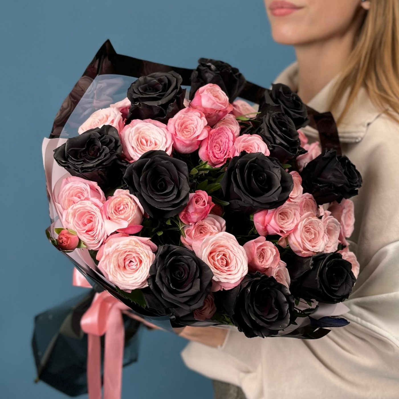 Роза черная 11 шт., Роза кустовая 8 шт. |