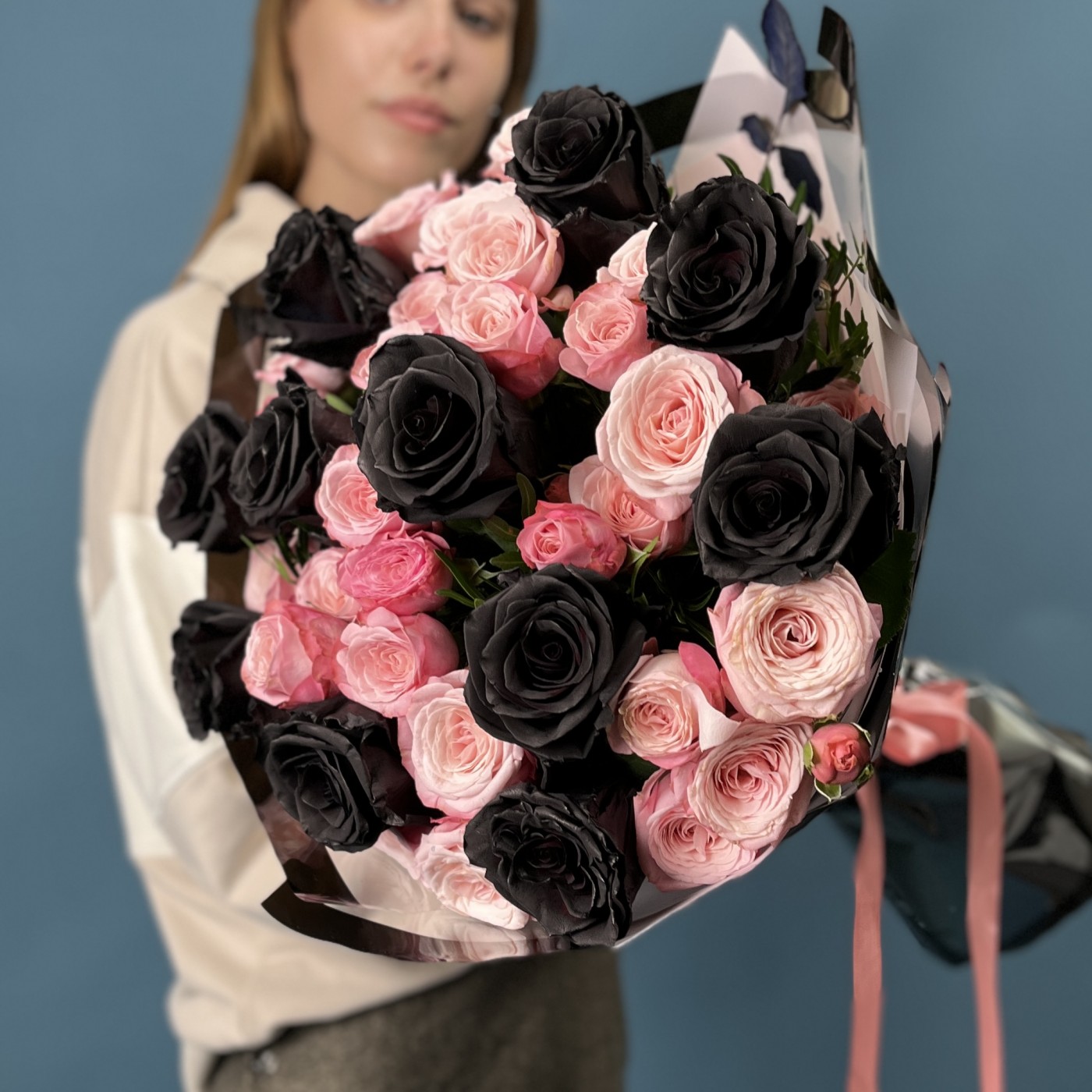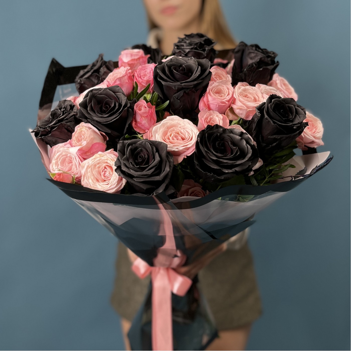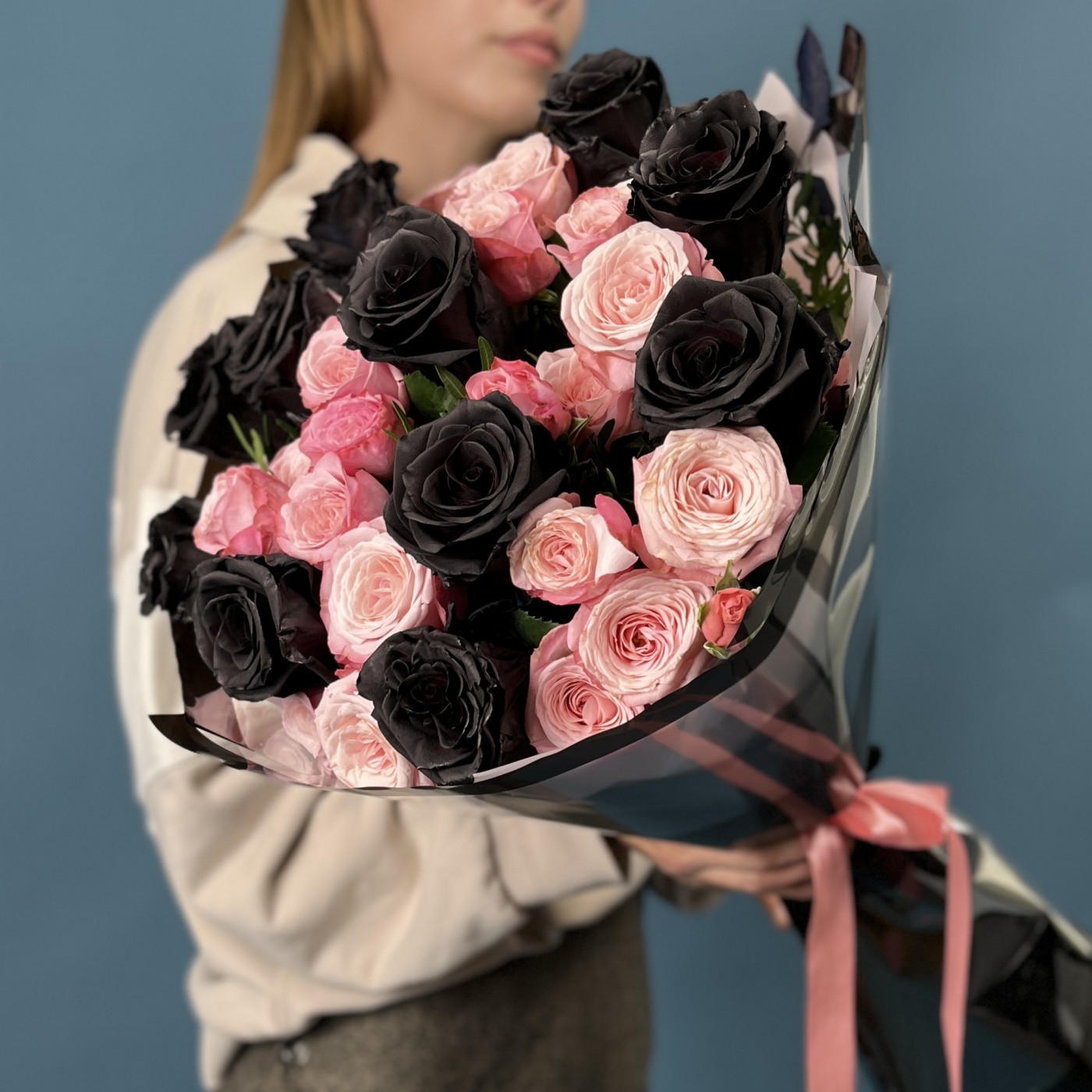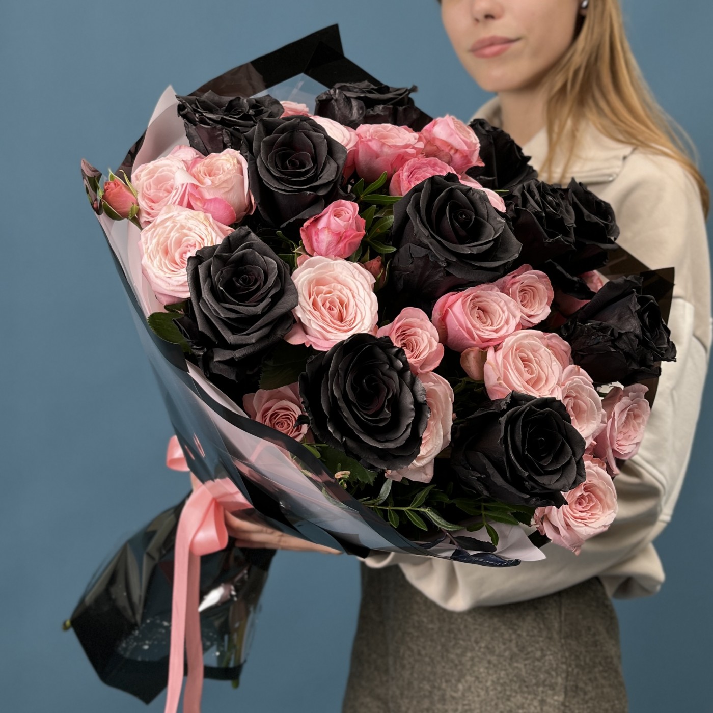 Роза черная 11 шт., Роза кустовая 8 шт. |