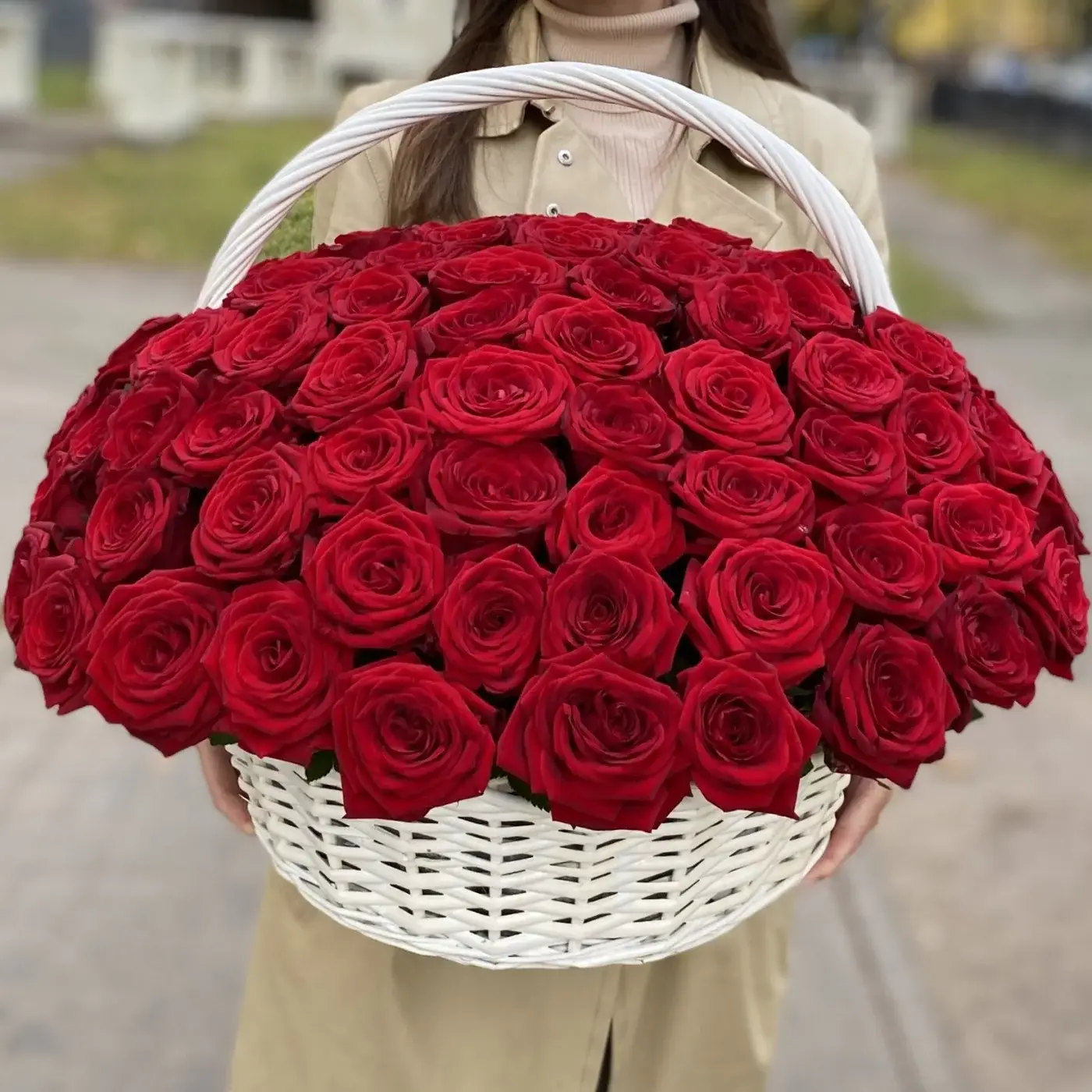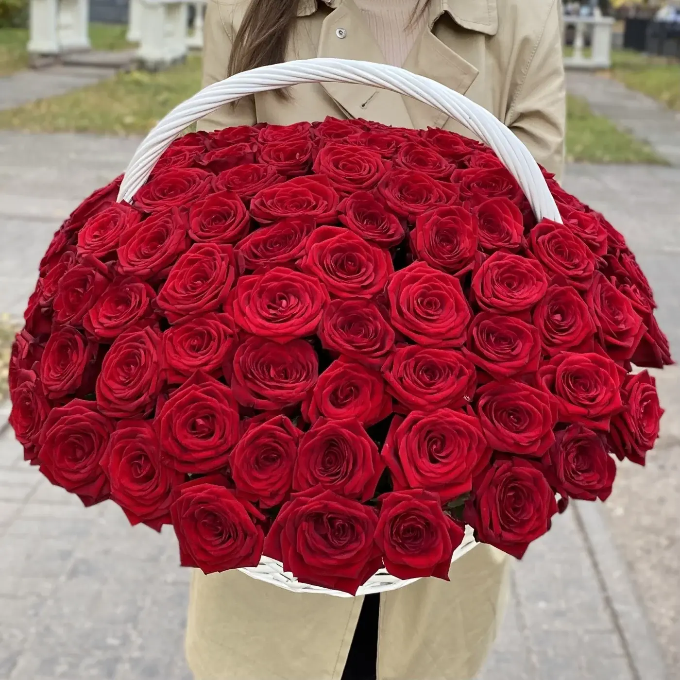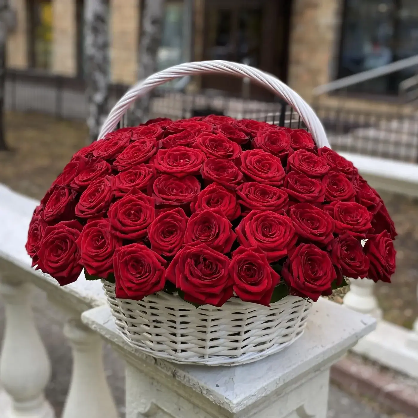 101 красная роза в корзине