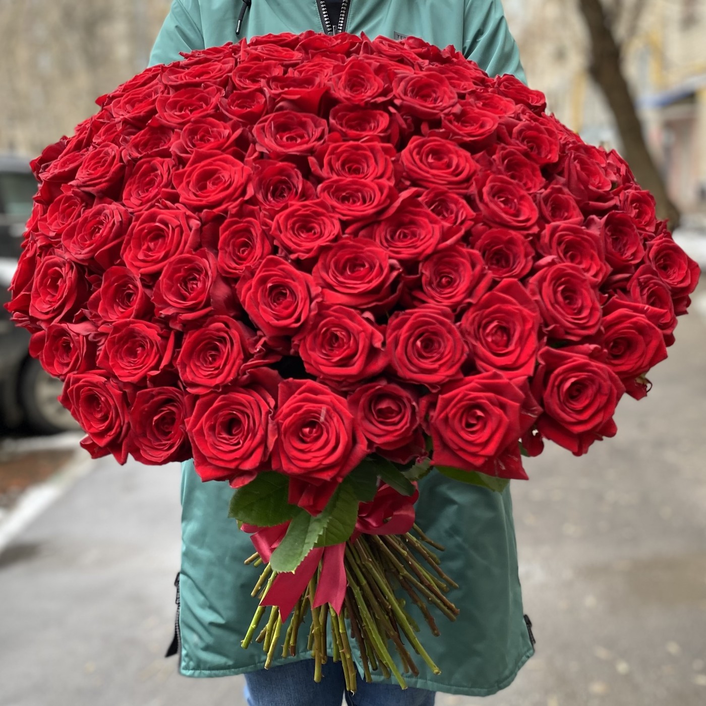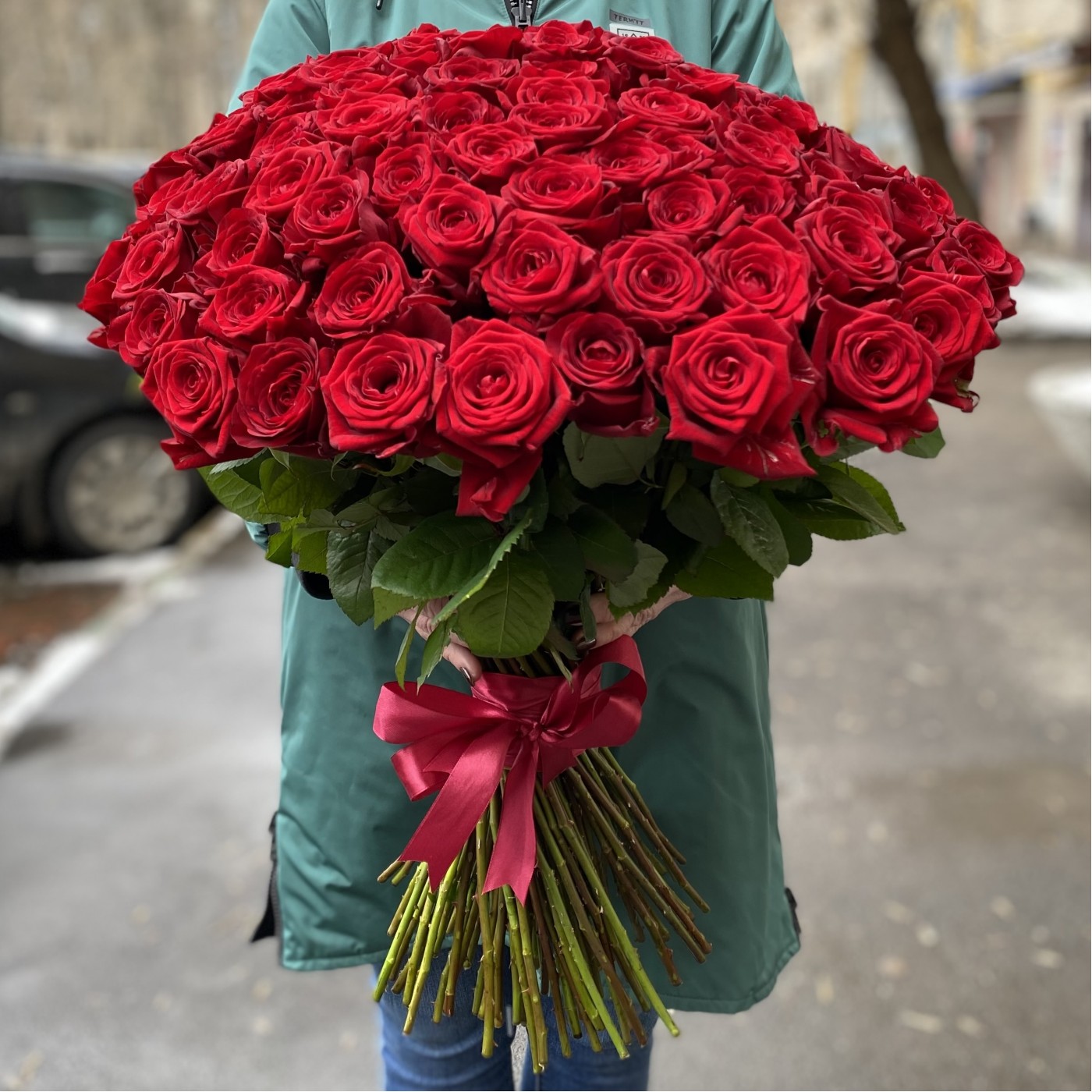101 красная роза Premium 60 см.