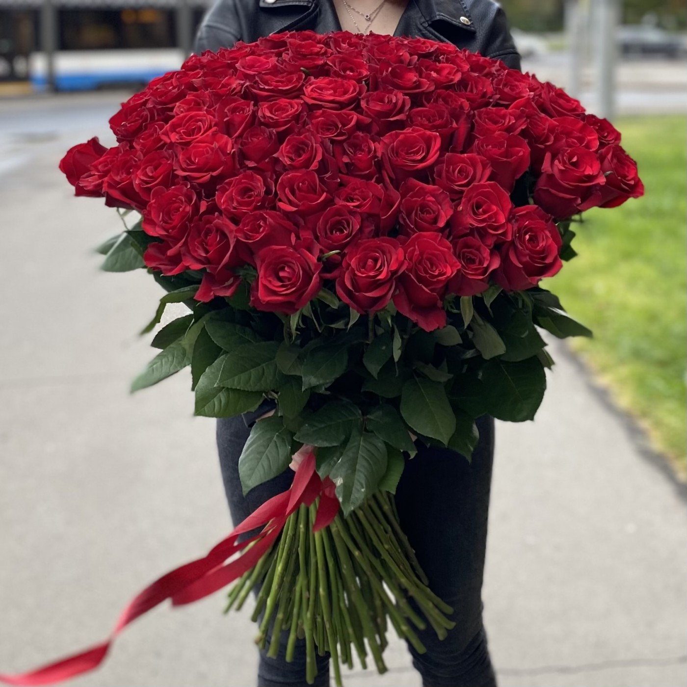 101 красная роза Premium 80 см.