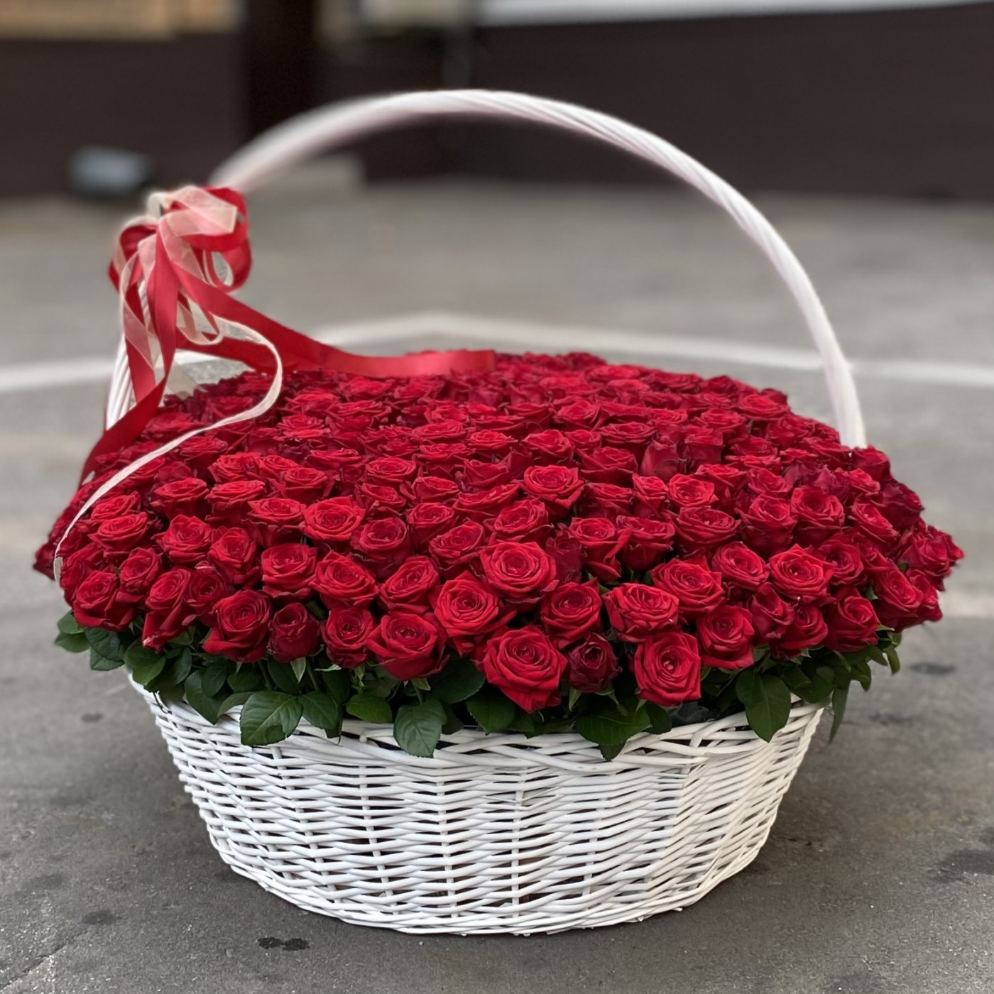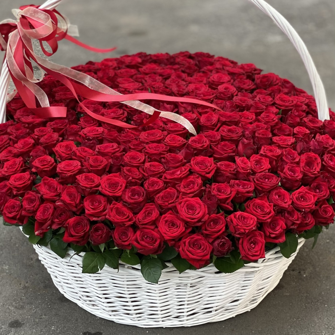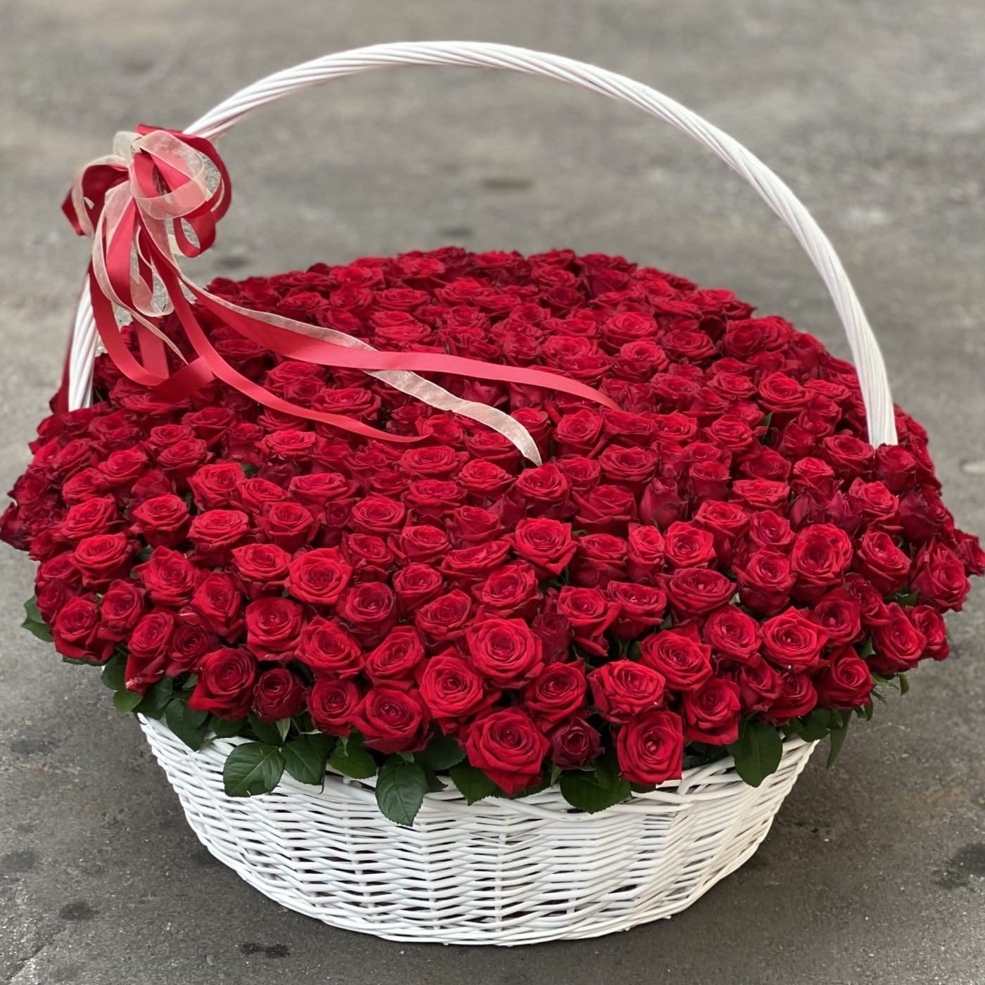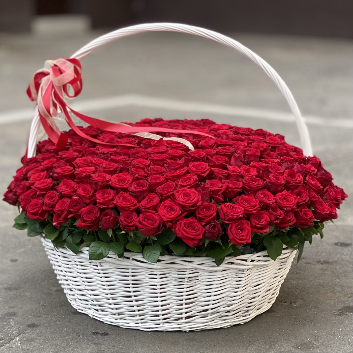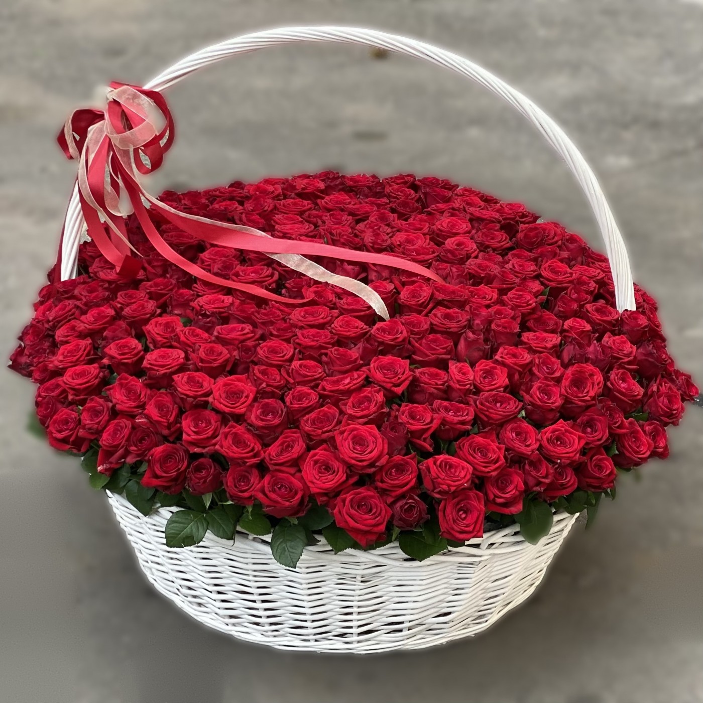 301 красная роза в корзине