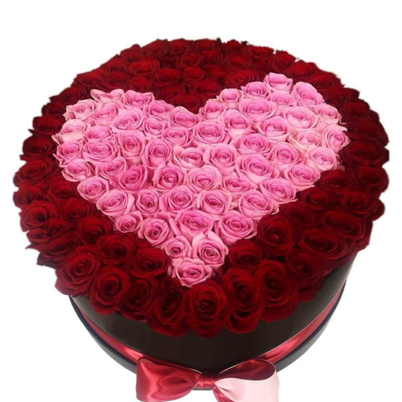 101 красная и розовая роза, коробка.