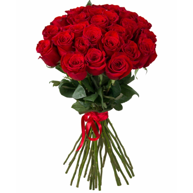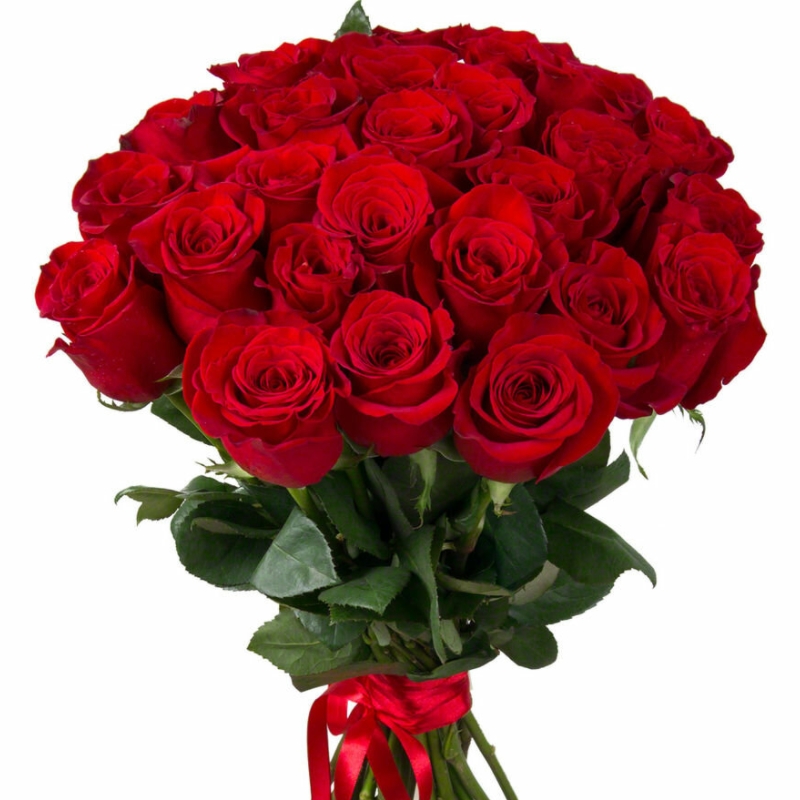Букет состоит из 31 красная роза, прозрачная упаковка, атласная лента.