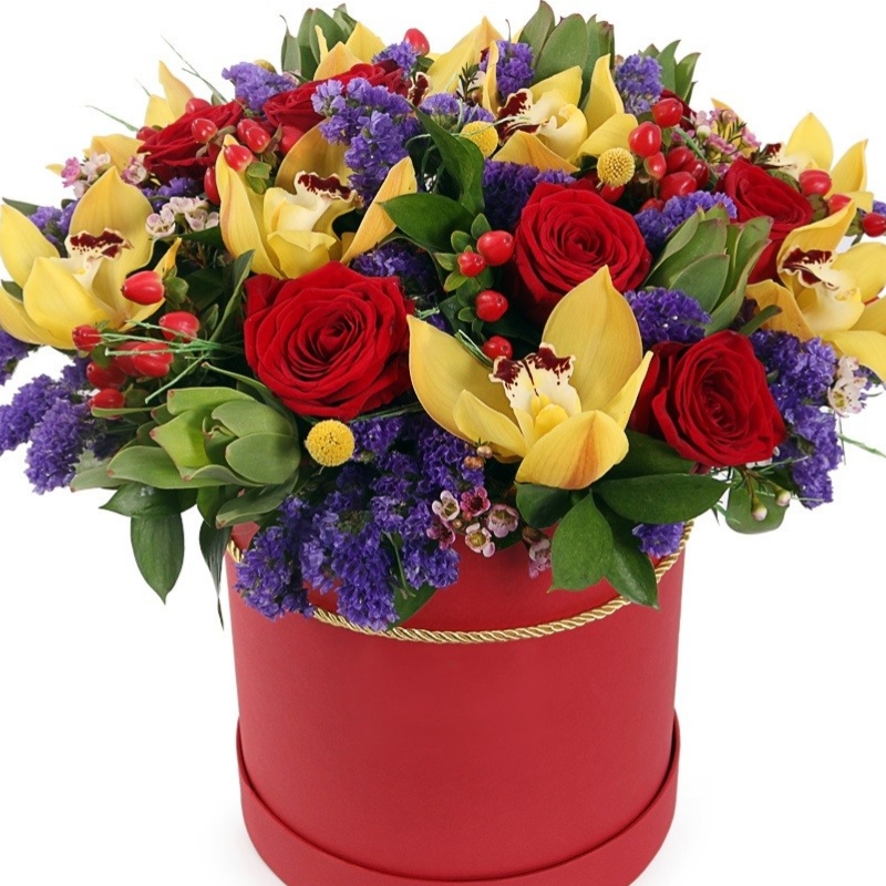 Гиперикум, Краспедия, Орхидея, Роза, Статица |