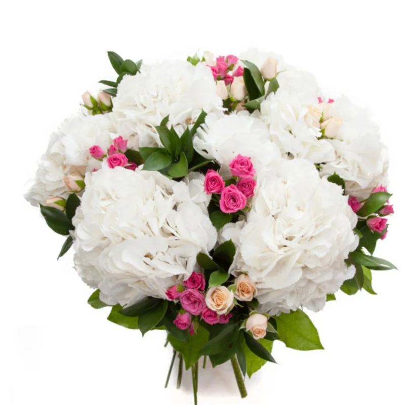 Букет из гортензий и кустовых роз