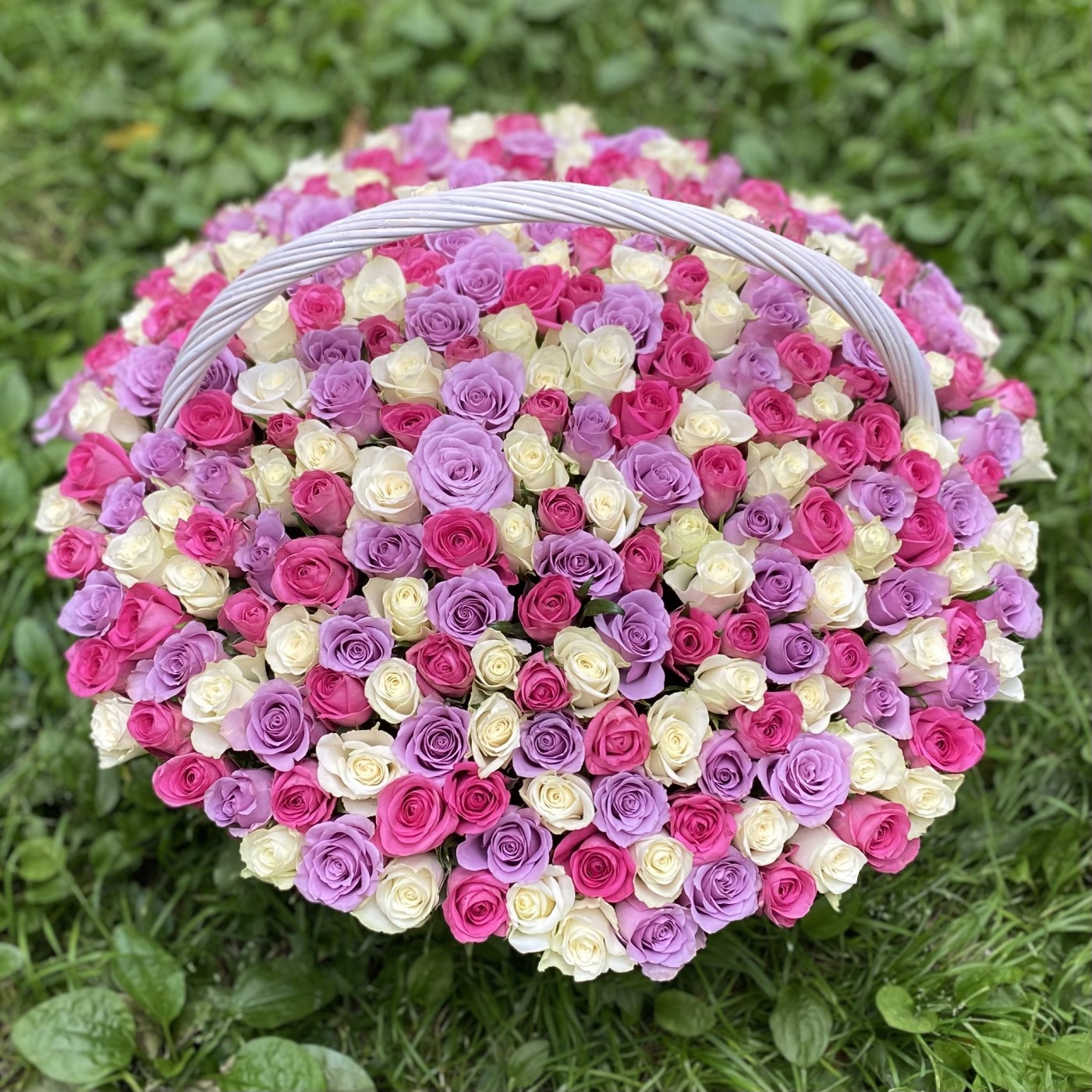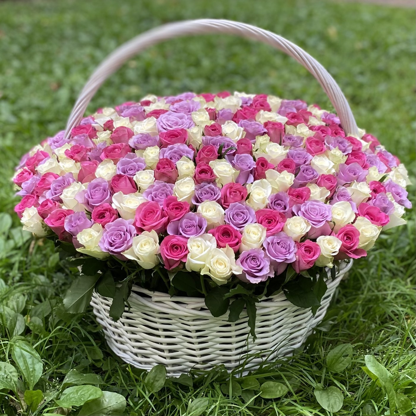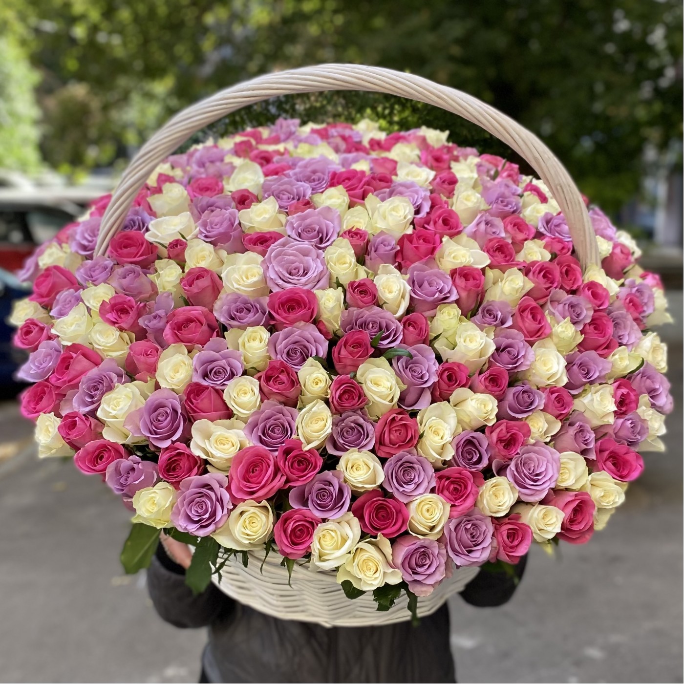 301 роза в корзине Нежный микс