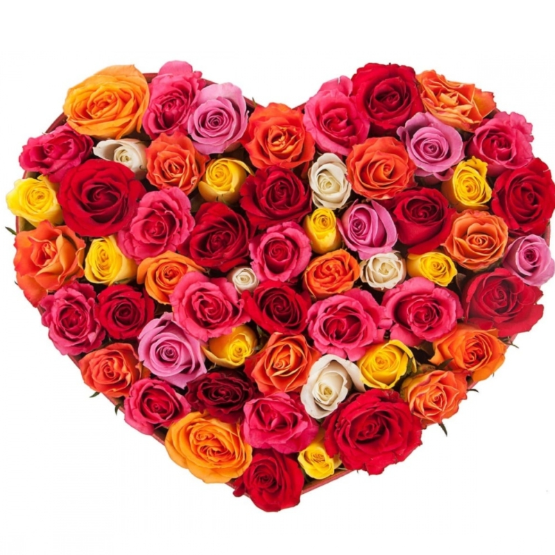 Композиция "Сердце" MIX из 51 розы в коробке