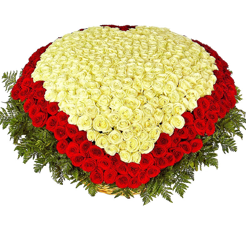 Сердце из 501 розы в корзине