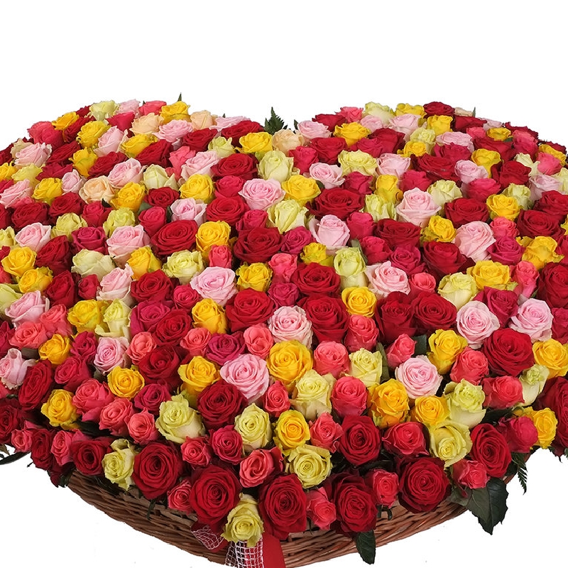 MIX из роз в виде сердца в корзине