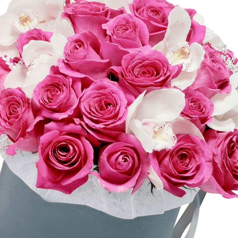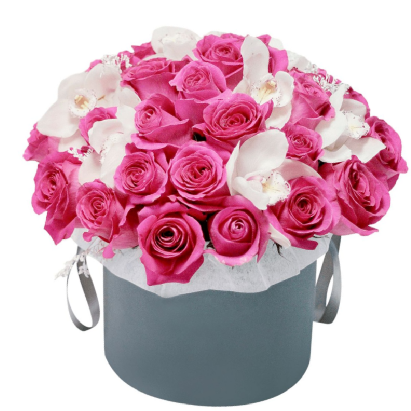 Букет из роз и орхидей в коробке
