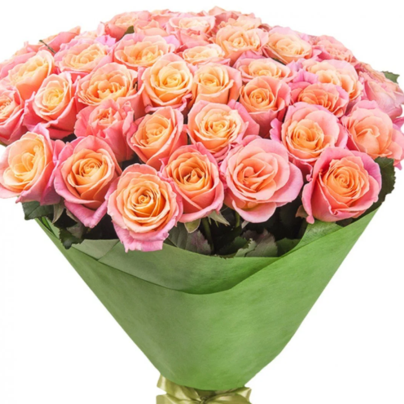 Букет состоит из 45 розовых роз, красивая упаковка, атласная лента.