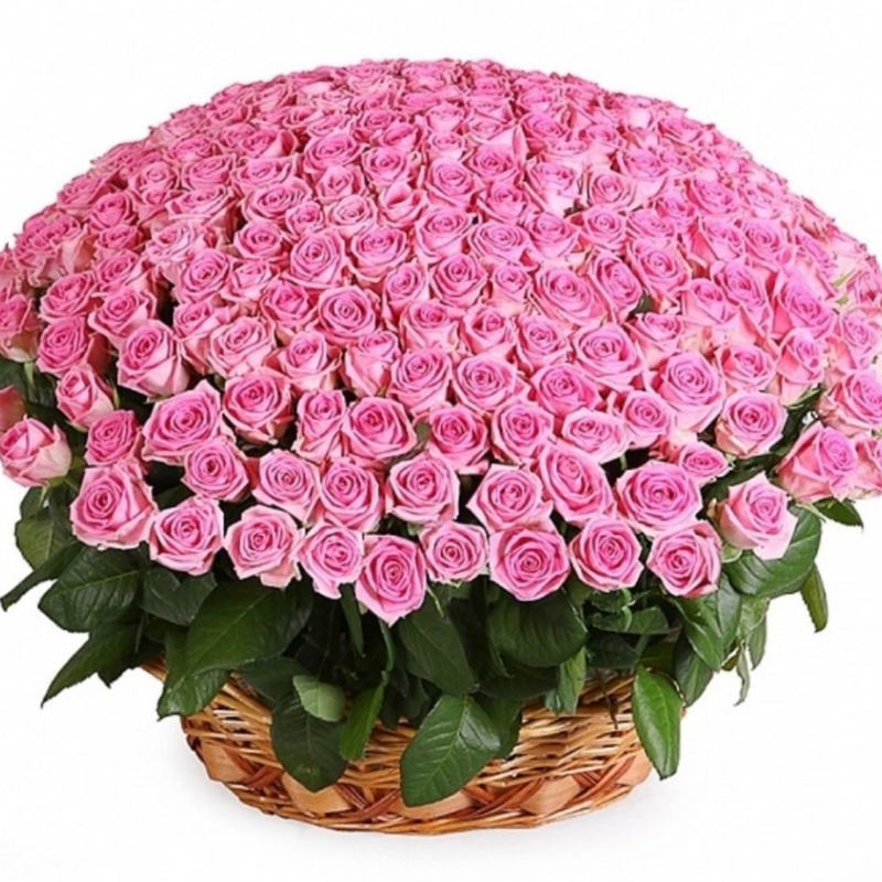 Букет из 201 розовой розы в корзине