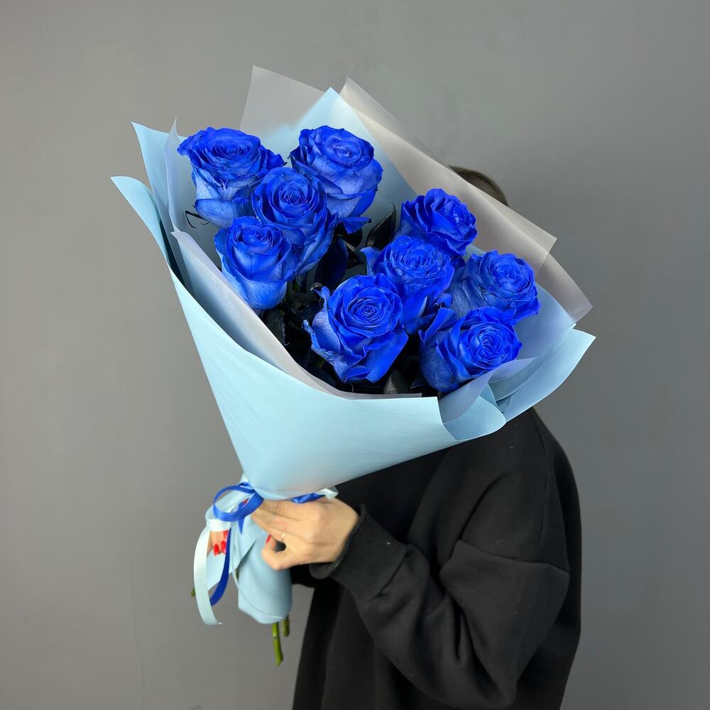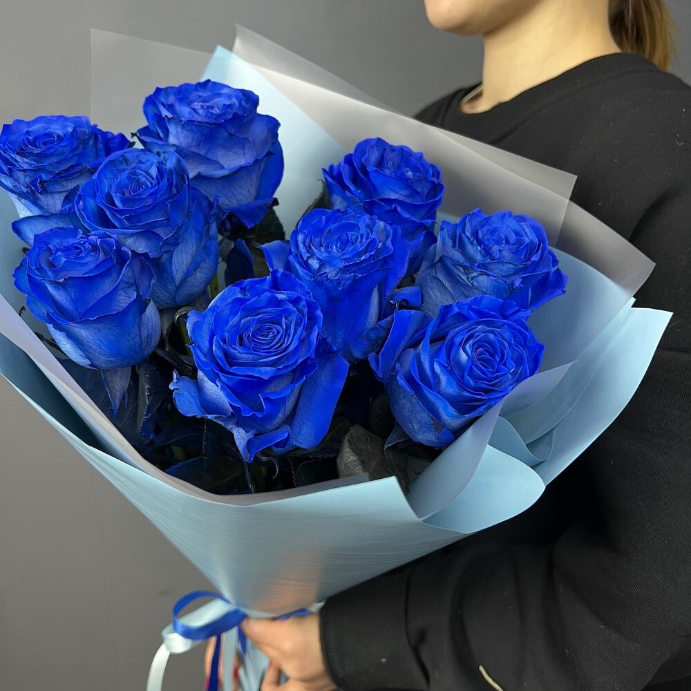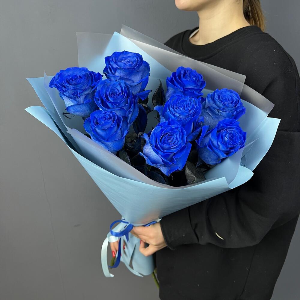 Роза синяя - 9 шт.